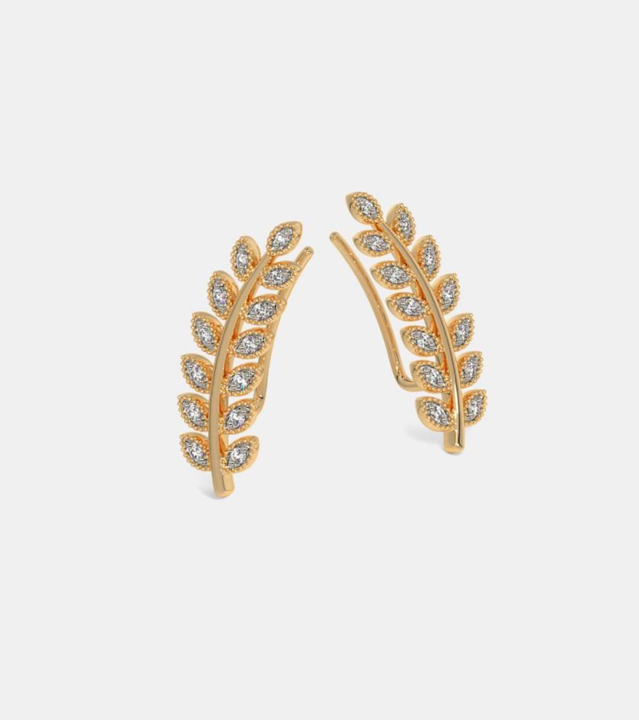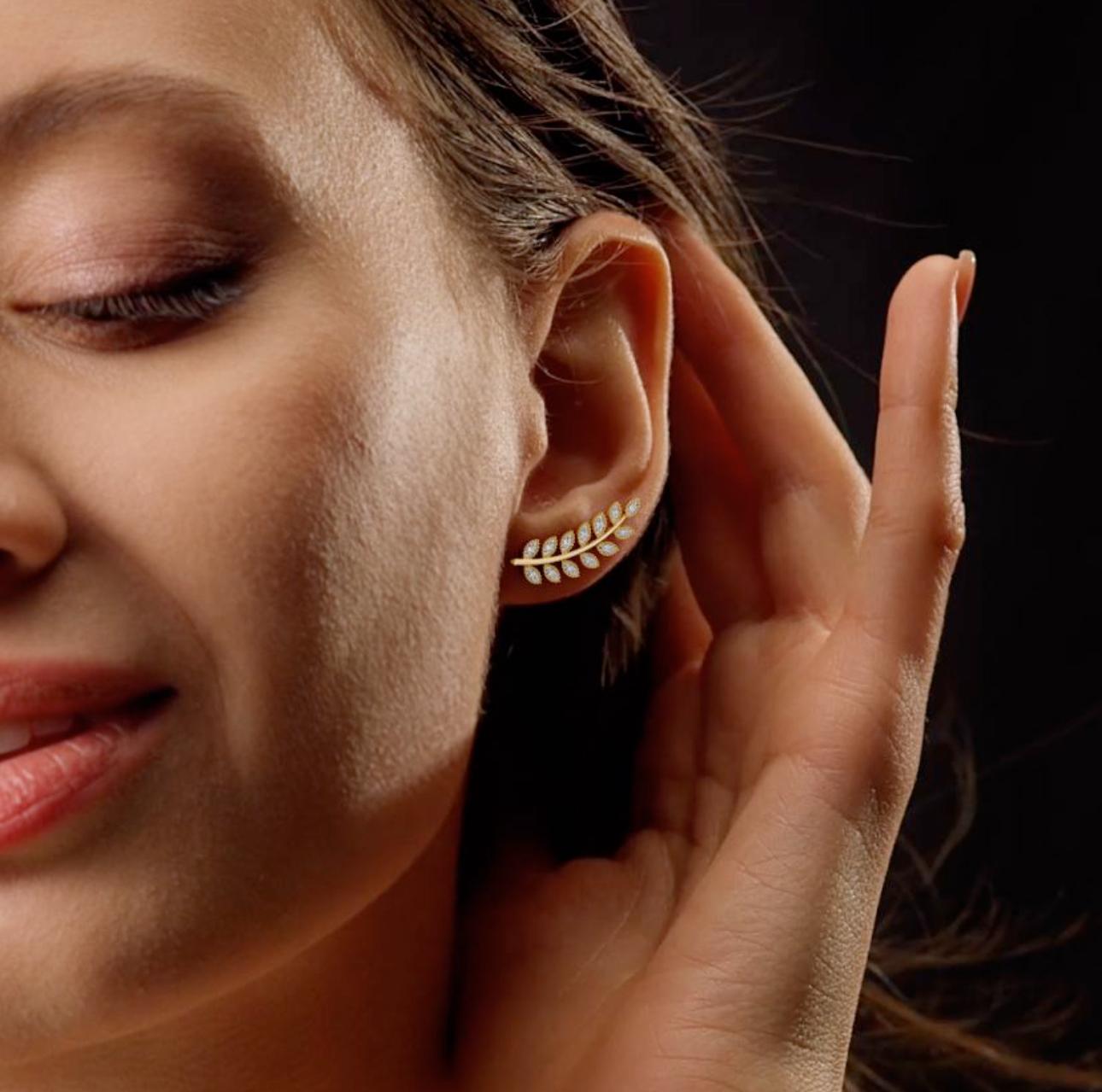 This exquisite climbing leaf earring is crafted from 4.1g 92.5 Sterling silver and set with 0.5ct of brilliant diamonds. The perfect balace of nature and luxury.